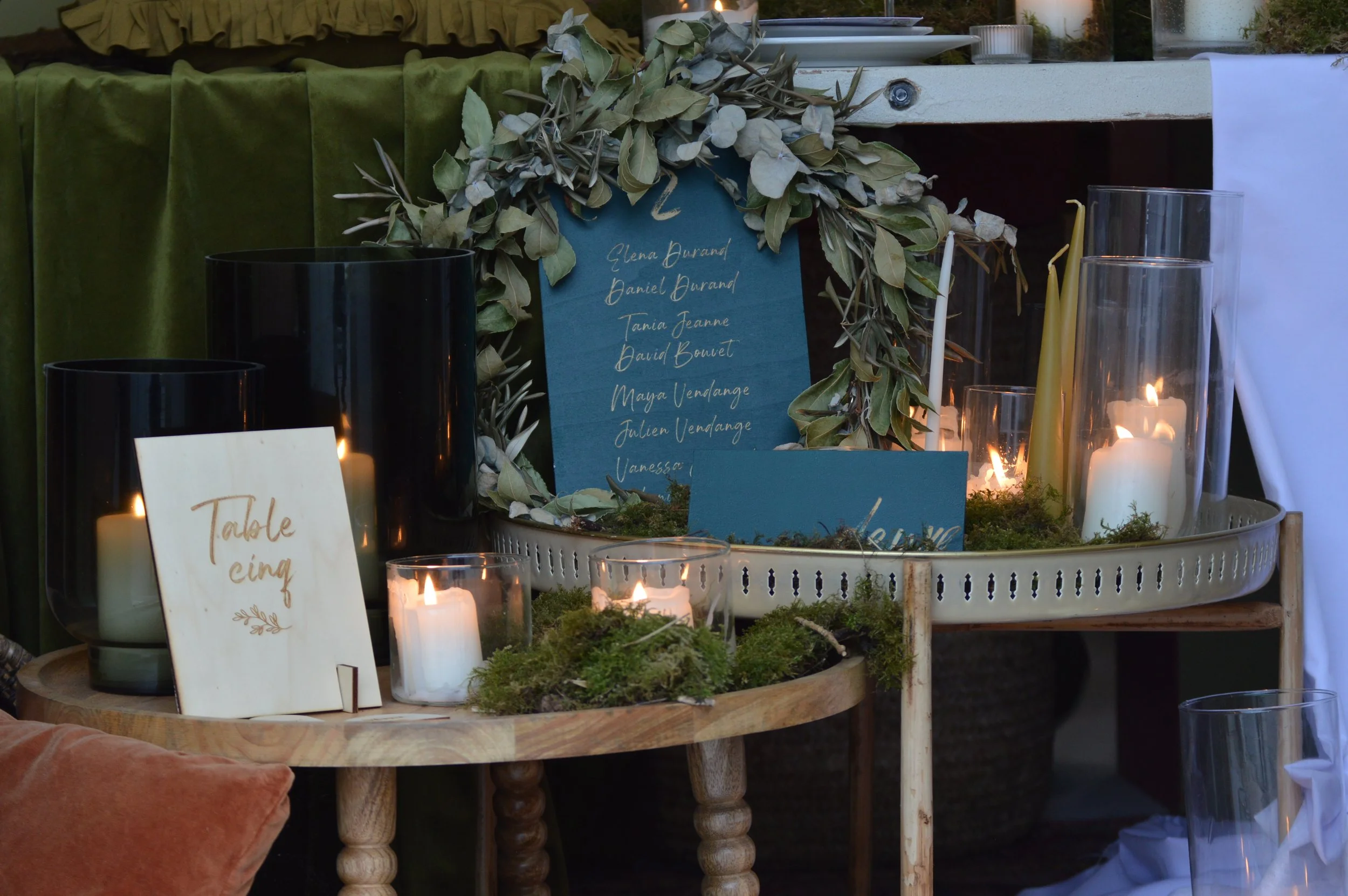 Laissez vous séduire par mes collections élégantes et raffinées ainsi que nos personnalisation sur mesure : que ce soit des plans de table artistiques, des panneaux de bienvenue , ou tout autre détail soigné qui reflète parfaitement votre style distinctif.